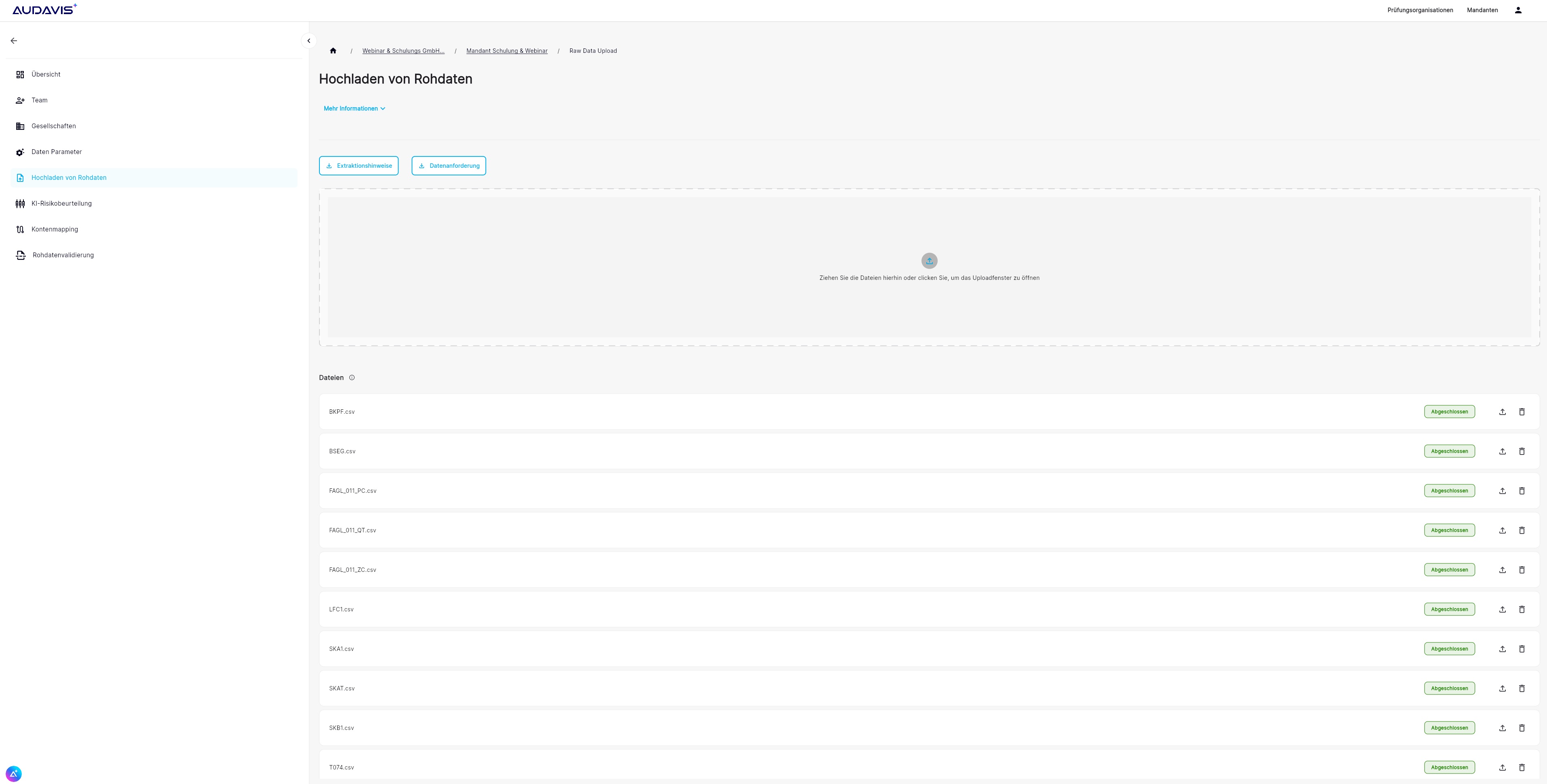 Die KI-Prüfungsplattform AUDAVIS ermöglicht es, bequem per Drag & Drop aus SAP, DATEV, SAGE und vielen anderen ERP- / Buchhaltungssystemen Daten entsprechend den Standardschnittstellen zu laden. Sie automatisiert die gesamte Datenverarbeitung und -validierung für den Prüfer. AUDAVIS automatisiert dabei den gesamten Prozess von der Datenextraktion bis zur Ergebnisbereitstellung innerhalb von Minuten. Dabei erfolgt jeder Schritt auf einer modernen und skalierbaren Plattform, die der Prüfer selbst auf die Bedürfnisse seiner Mandate anpassen kann.