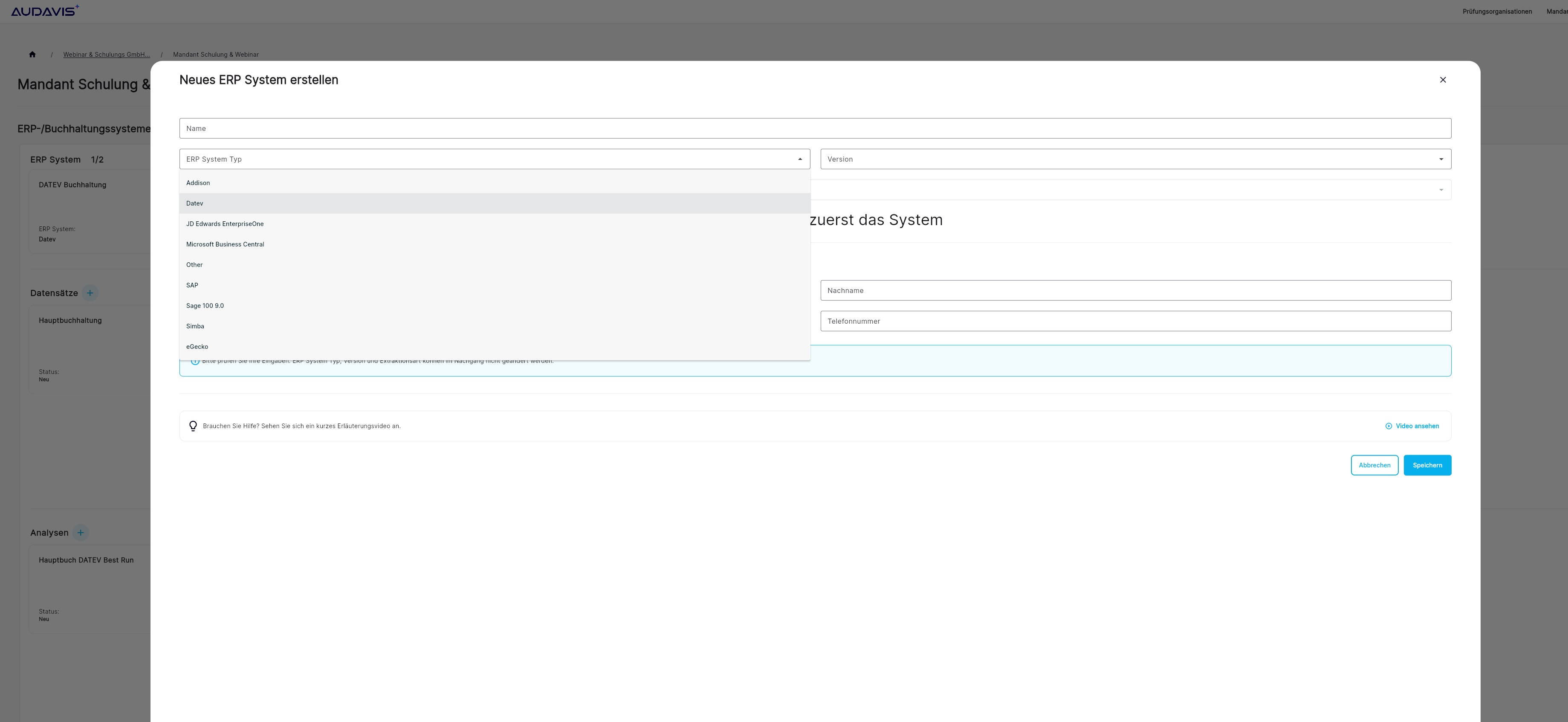 Abbildung 2: Auswahl einer Schnittstelle zu einem ERP- bzw. Buchungssystem